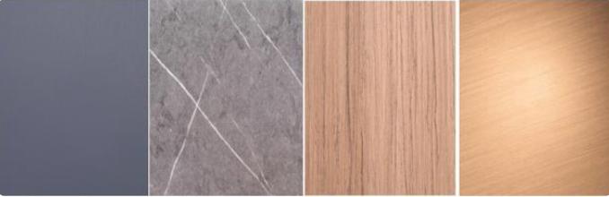 金屬復(fù)合板在其他方面也有其獨到之處。如在裝飾性上,金屬復(fù)合板除了表面觸感優(yōu)越外,還具有豐富多樣的顏色,還可以仿照石紋、木紋、布紋等材質(zhì),在實用性外,還增添了美觀性。且金屬復(fù)合板相對來說更加容易清潔,更滿足人們的要求。