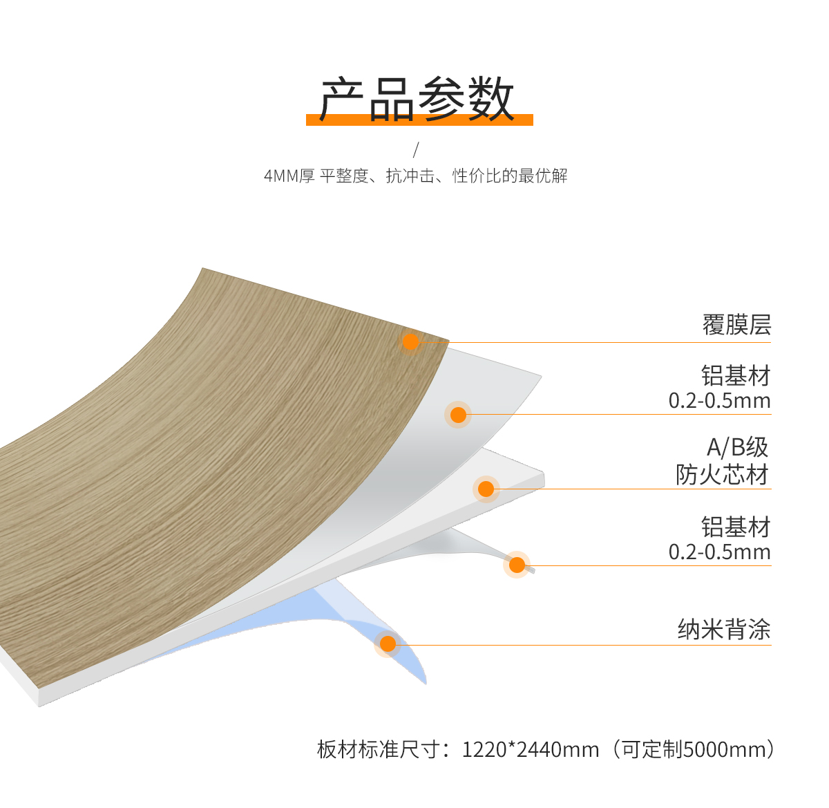 規(guī)格參數(shù):1220*2440*4.0mm(可定制,長(zhǎng)度最大可達(dá)5m)