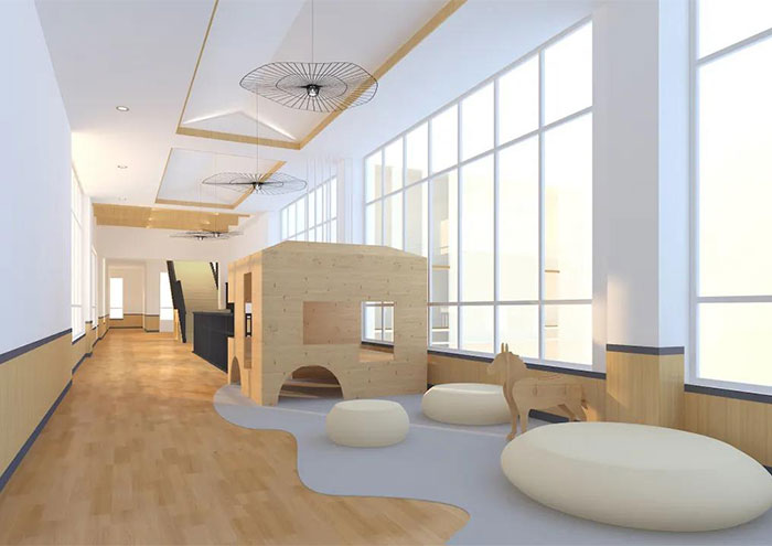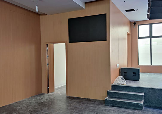 使用板材:4mm鋁基科技板,板材應用:課室墻面,紋理花色:高光亮白,太白木,安裝方式:龍骨卡槽干掛