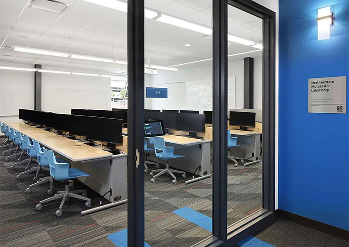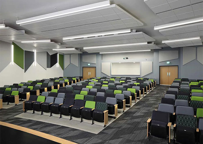 使用板材:4mm鋁基科技板,板材應用:課室墻面,紋理花色:高光亮白,摩登橡木,安裝方式:龍骨卡槽干掛