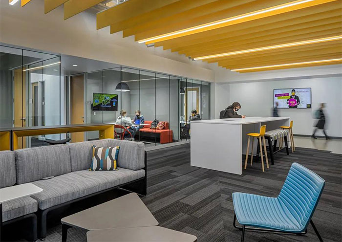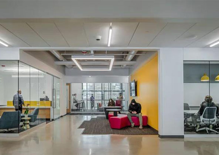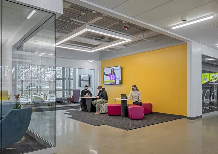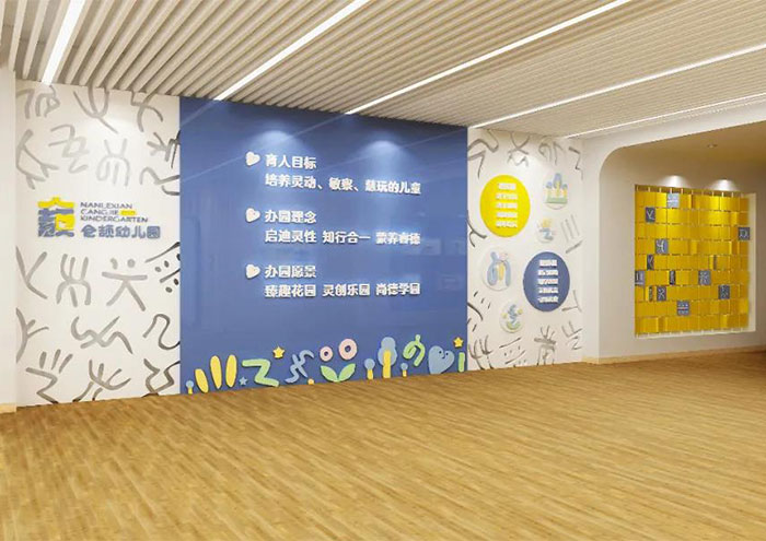 使用板材:4mm鋁基科技板,板材應用:課室墻面,紋理花色:高光亮白,明黃色,安裝方式:龍骨卡槽干掛